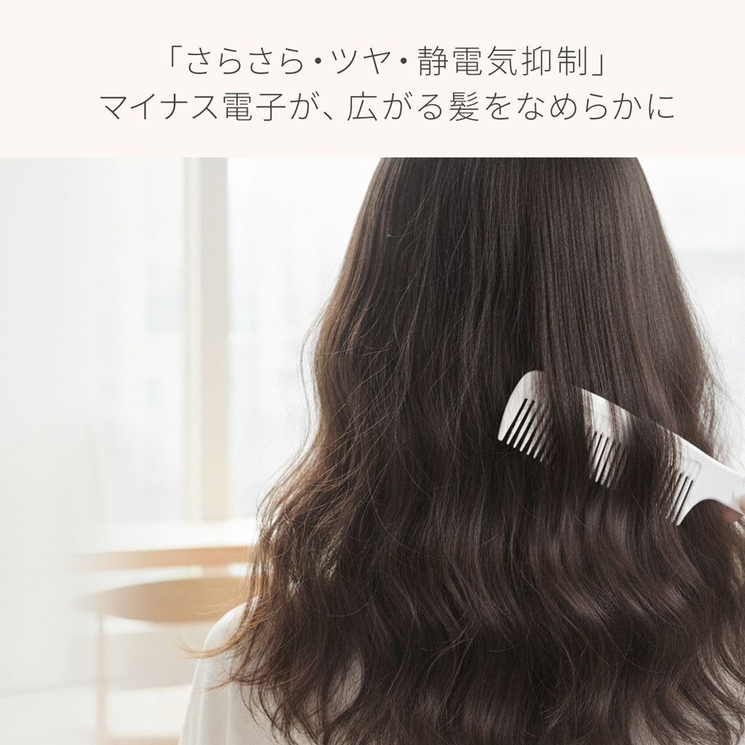 マイナス電子が、キューティクルの乱れを瞬時にケア。サッと梳かすだけで、サラサラ&ツヤをプラスします。