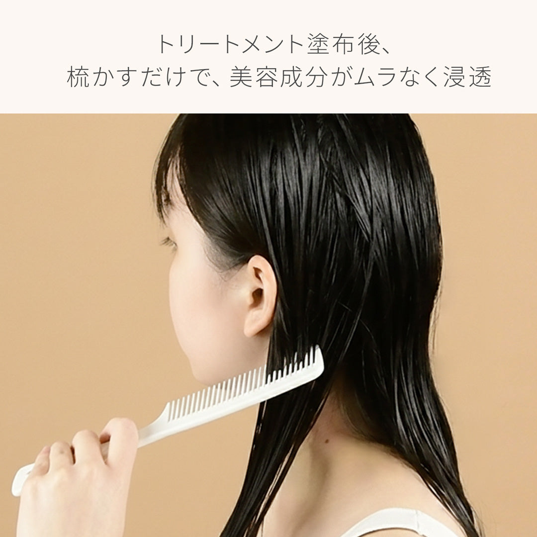 お風呂場でのコーミングにも♪トリートメント後に梳かすだけで、髪の重なりをほぐし、美容成分がゆき渡りやすい状態に。サロン仕上げのようなうるおい感とまとまりへ。