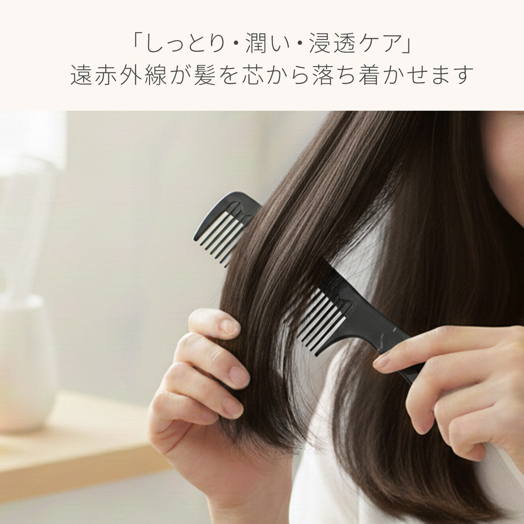 お風呂場でのコーミングにも♪トリートメント塗布後に梳かすだけ。『遠赤外線(育成光線)』が美容成分の浸透をサポートし、潤いを密閉。ヘアケア効果を最大限に高めます。