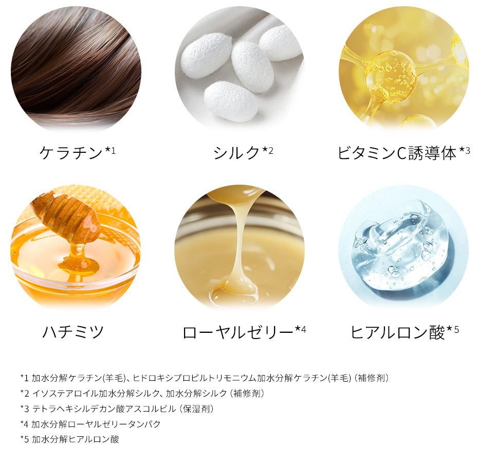 ハリコシ・弾力のある美しい髪を手に入れるため、これらの成分を浸透させて、ダメージ補修と同時に、パサつきや広がりを抑えます。