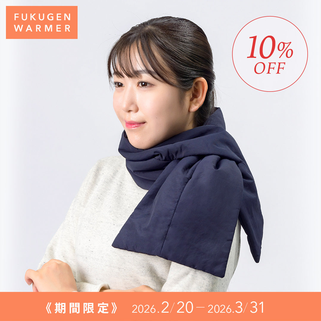 この時期、昼間と夜の気温差で何を着ようと毎朝悩みます。復元ウォーマーマフラーは少し薄着でも首元からポカポカを体感でき、マフラーを持っていれば防寒対策は完璧です。また寒くなると肩がこりますが、首元にマイナス電子シートが入っているので、マフラーをする事で肩こりも和らぎ、家でも夜一時間くらい使ってます。これからの季節には特に役立ちそうです。