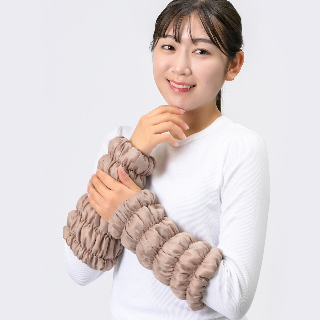 復元ウォーマーは、天然鉱石パウダーを練り込んだ「ウォーマー繊維」を贅沢に使用しています。この繊維は、体温とほぼ同じ波長(育成光線)を放ち、体と共鳴共振することで熱を生み出し、体の芯までじんわりと温めます。